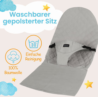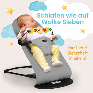Unsere Babywippe bietet eine sichere und gemütliche Möglichkeit, Ihr Baby abzulegen. Der verstellbare Sitz und die sanfte Wiegebewegung schenken Geborgenheit und Komfort. Diese Wippe fördert die natürliche Entwicklung Ihres Babys und dient als idealer Ort zum Spielen und Entspannen. Leicht zu transportieren und platzsparend zerlegbar – die perfekte Wahl für Eltern, die das Beste für ihr Baby wollen. Jede Wippe wird mit einem Spielbogen geliefert. Erhältlich in drei eleganten Varianten: Schwarz, Beige und Grau. Gönnen Sie Ihrem Kleinen den optimalen Ort zum Wohlfühlen!
